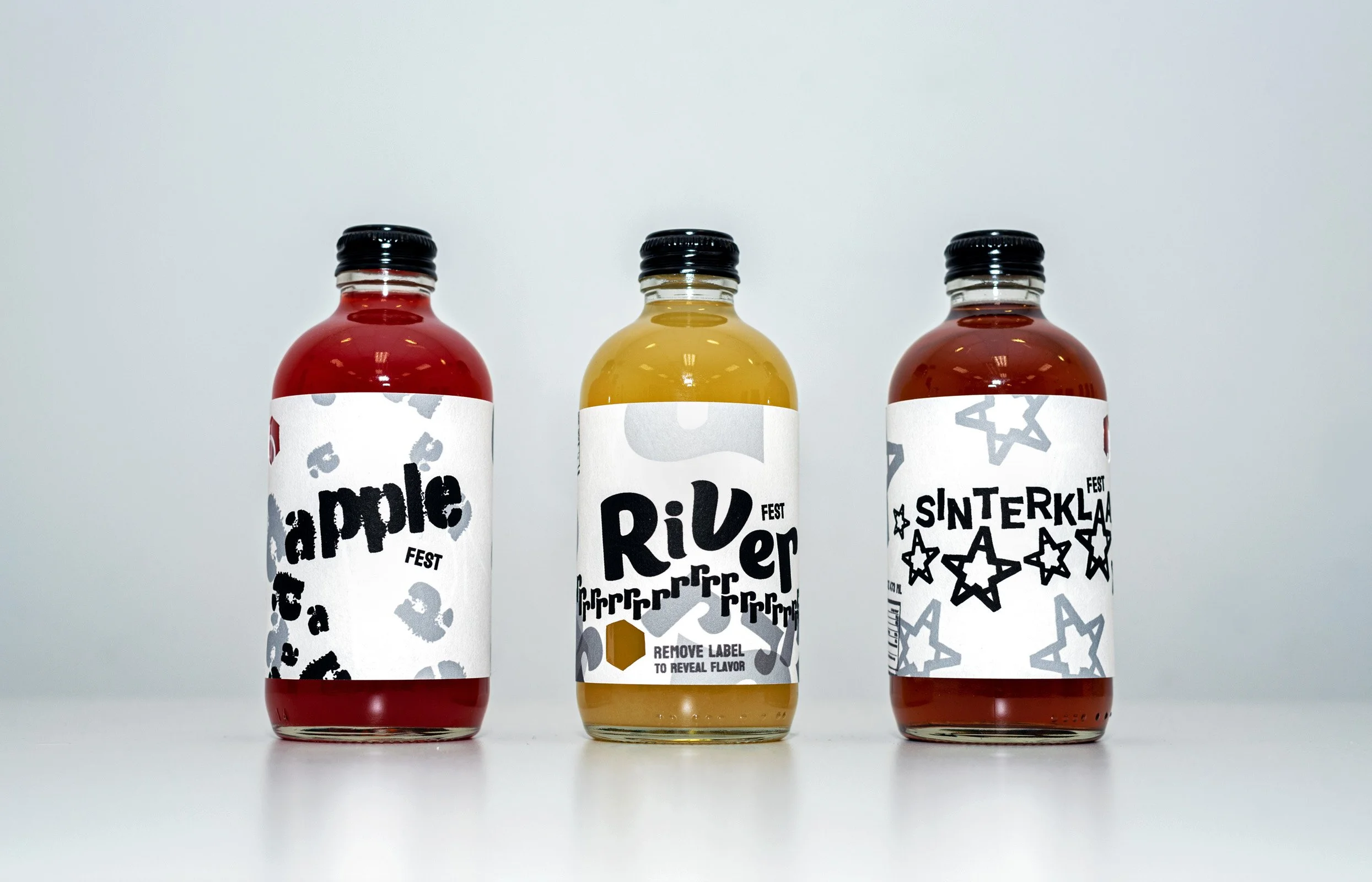 The beer packaging showcases bold typography that reflects the valley’s landscapes, with a striking white can set against a dark six-pack box. The wine bottles reveal art and historical locations through a delicate die-cut design on the exterior box. The kombucha series features whimsical letterforms inspired by local festivals, allowing consumers to spin and remove the label to unveil handwritten flavor names.