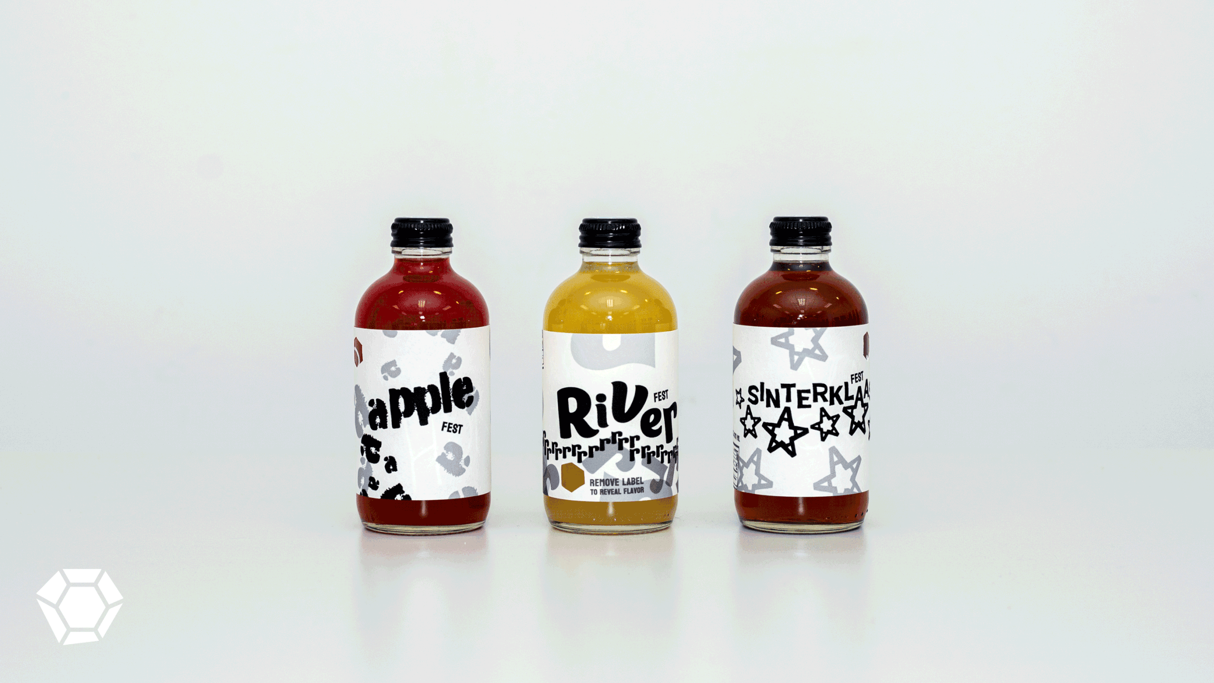 Hudson Gems Beverage Company features three drink types—beer, wine, and kombucha—that celebrate the unique qualities of the Hudson Valley in New York. Each packaging series playfully and elegantly reveals flavor names and drink types, connecting to the region’s trademark.