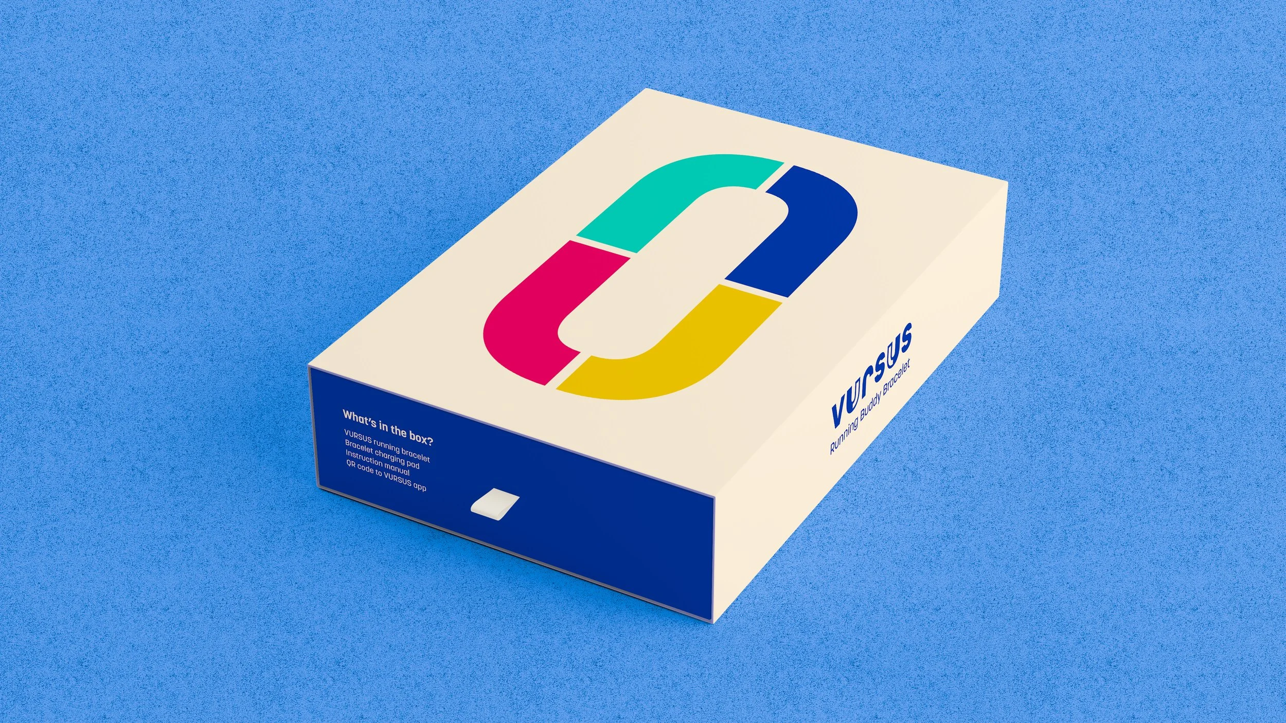 The bracelet’s sleek, bangle-inspired design is easy to wear, avoiding traditional sports watch aesthetics, while its subtle glow adds a unique touch. The bright, branded packaging attracts the target audience and, upon opening, reveals the bracelet, charger, and instruction manual wrapped in the signature VURSUS track pattern.
