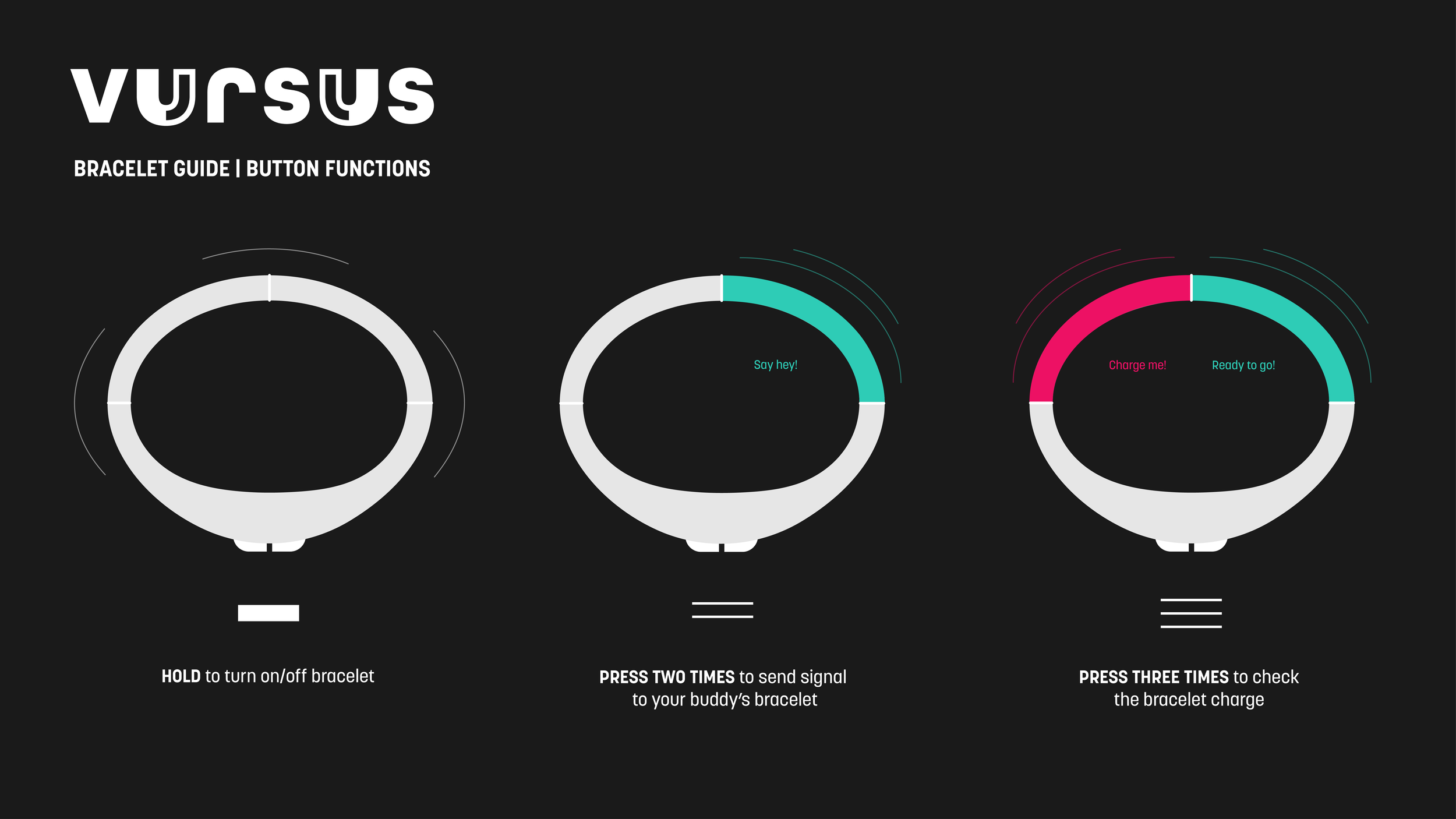 VURSUS is a partnership bracelet and app designed to motivate young runners to sync with friends. Users can schedule runs or activate the bracelet through movement, with its glow indicating a partner's activity level. This feature fosters a sense of companionship or friendly competition when running solo.
